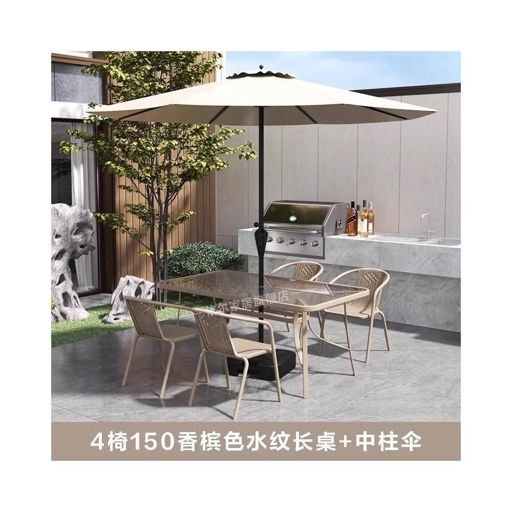 戶外庭院桌椅帶遮陽傘休閒室外中柱傘露臺別墅陽臺外擺太陽傘組合