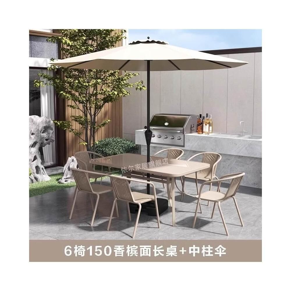 戶外庭院桌椅帶遮陽傘休閒室外中柱傘露臺別墅陽臺外擺太陽傘組合