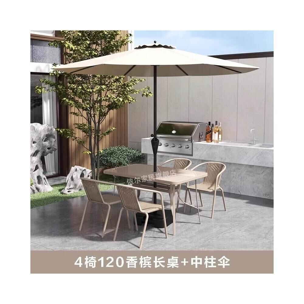 戶外庭院桌椅帶遮陽傘休閒室外中柱傘露臺別墅陽臺外擺太陽傘組合