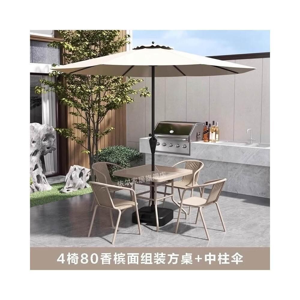 戶外庭院桌椅帶遮陽傘休閒室外中柱傘露臺別墅陽臺外擺太陽傘組合
