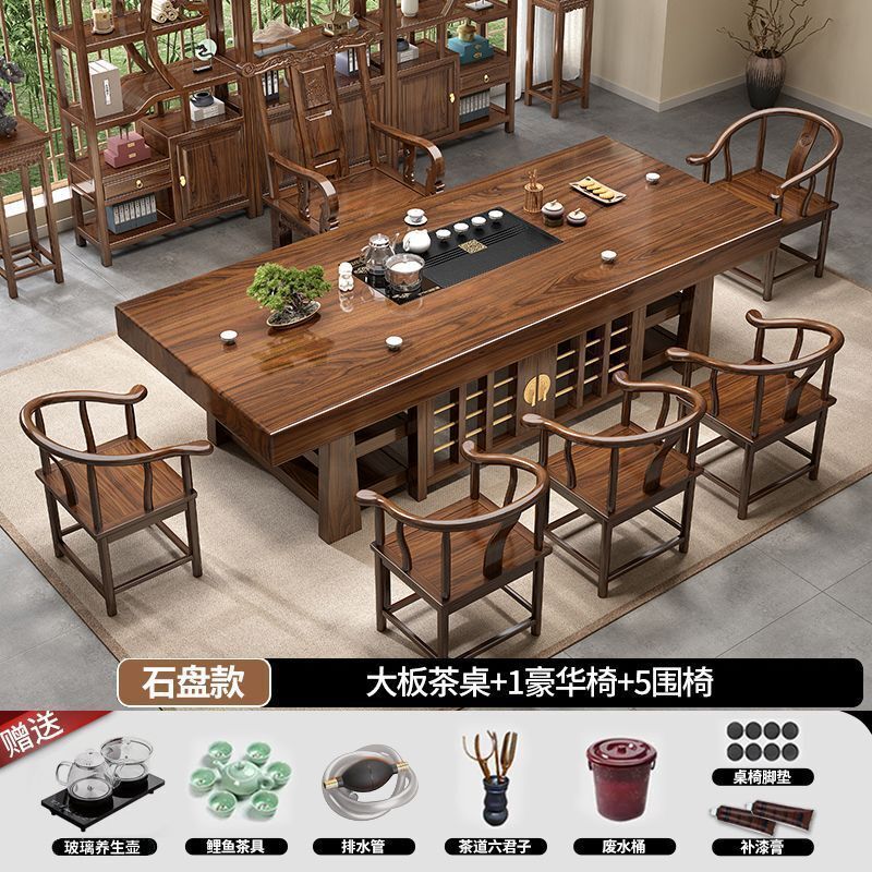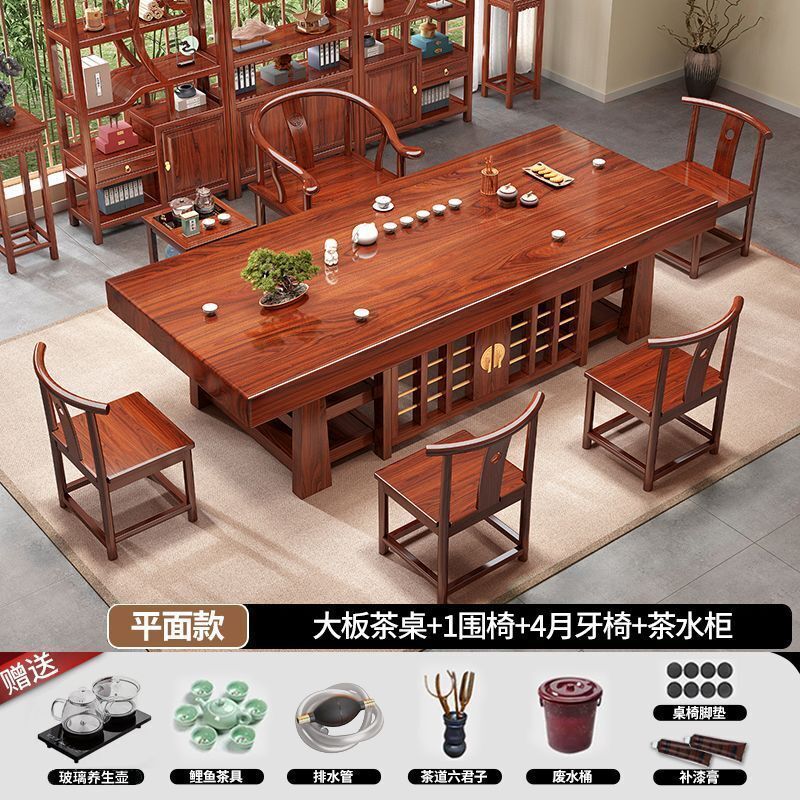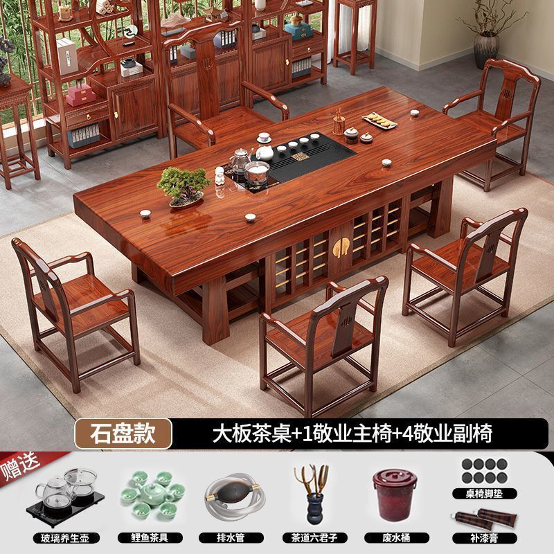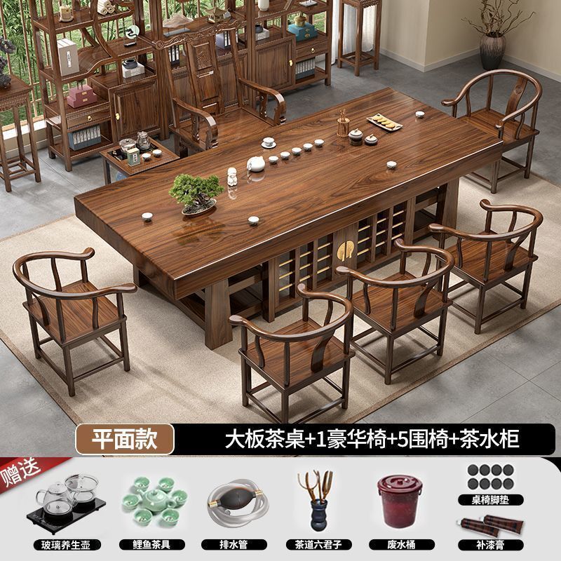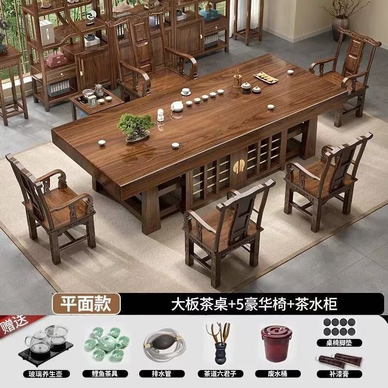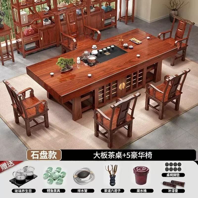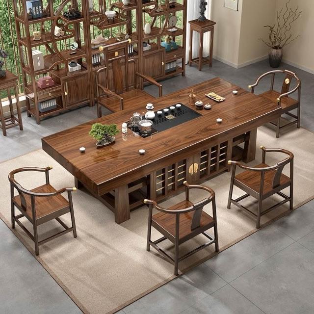 中式大板桌椅茶桌組合家用五椅茶幾茶臺一體實木一整套辦公室泡茶