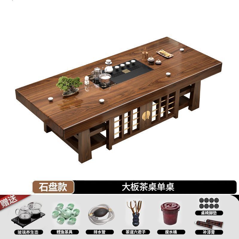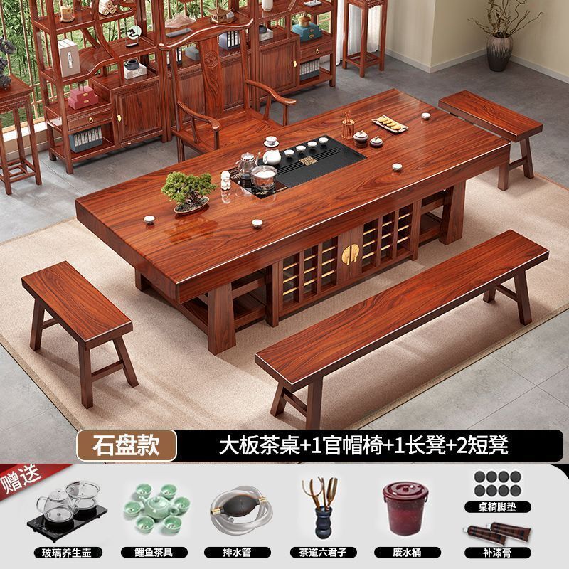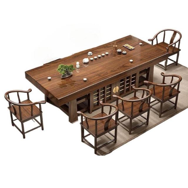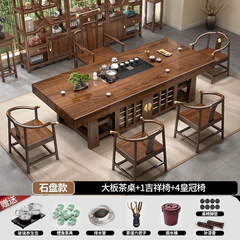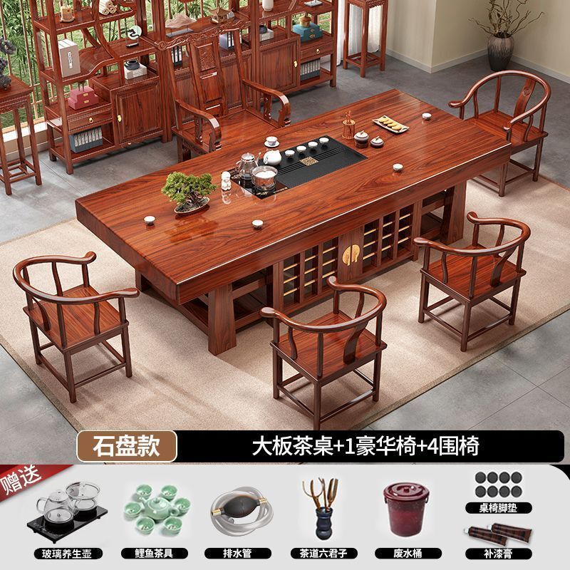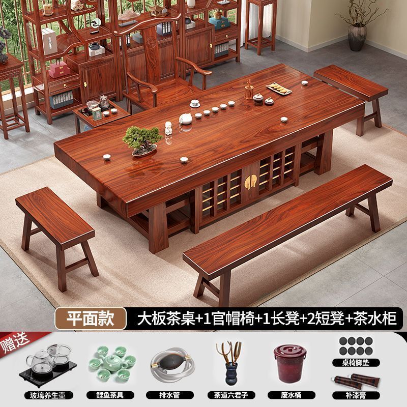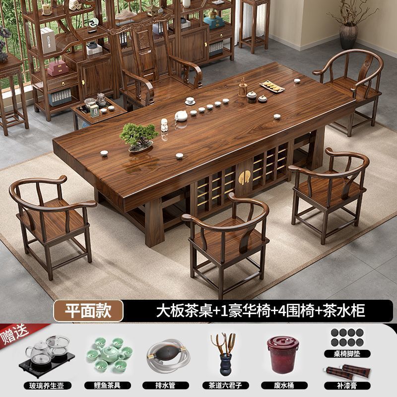 中式大板桌椅茶桌組合家用五椅茶幾茶臺一體實木一整套辦公室泡茶