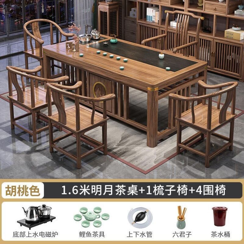 實木茶桌椅組合新中式茶臺辦公室茶幾家用茶具套裝一體禅意泡茶臺