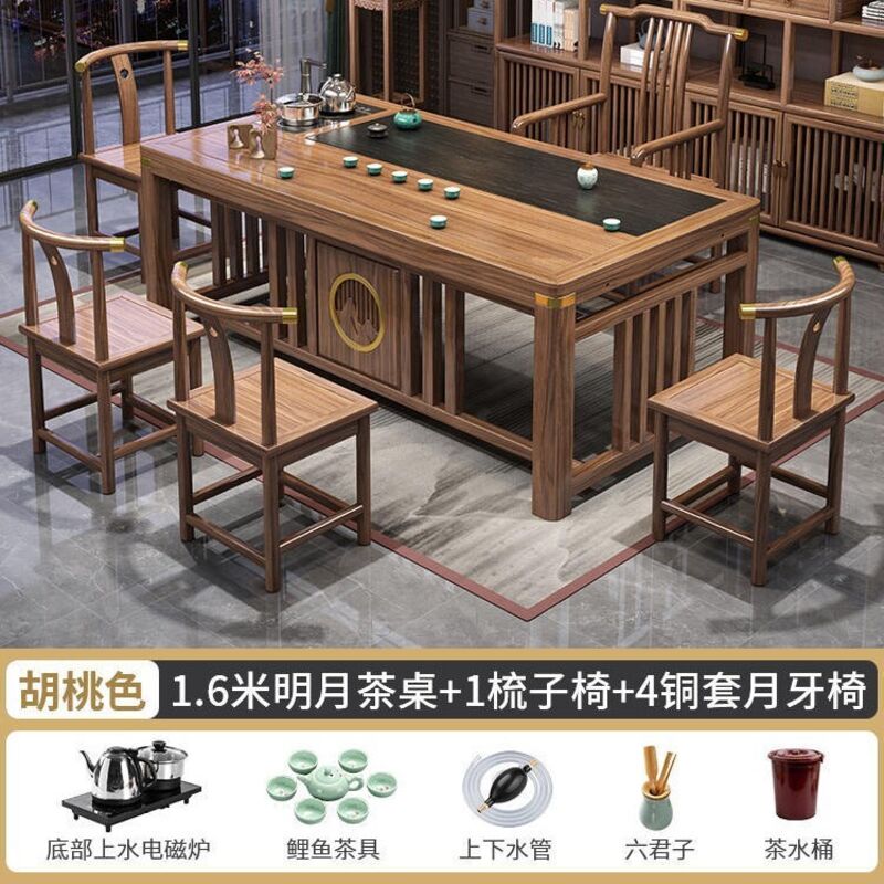 實木茶桌椅組合新中式茶臺辦公室茶幾家用茶具套裝一體禅意泡茶臺