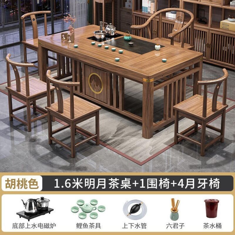 實木茶桌椅組合新中式茶臺辦公室茶幾家用茶具套裝一體禅意泡茶臺