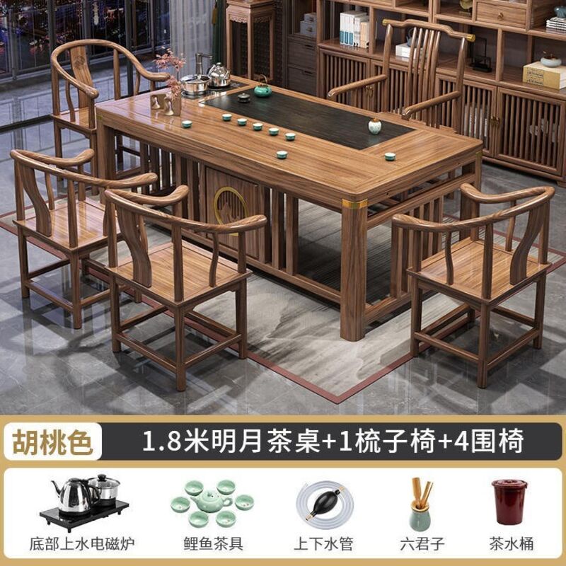 實木茶桌椅組合新中式茶臺辦公室茶幾家用茶具套裝一體禅意泡茶臺