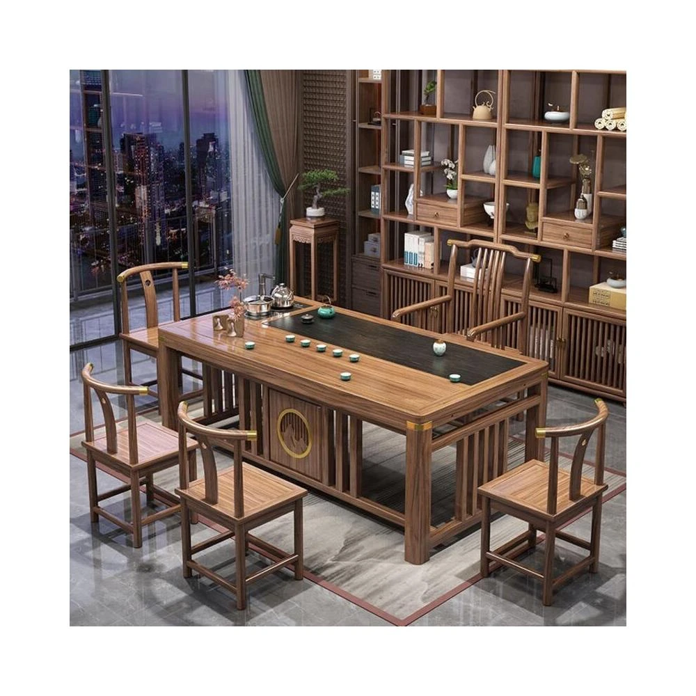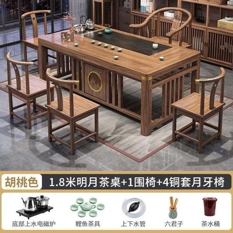實木茶桌椅組合新中式茶臺辦公室茶幾家用茶具套裝一體禅意泡茶臺