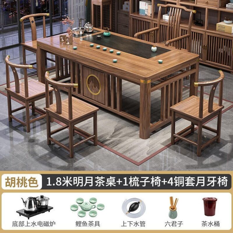 實木茶桌椅組合新中式茶臺辦公室茶幾家用茶具套裝一體禅意泡茶臺