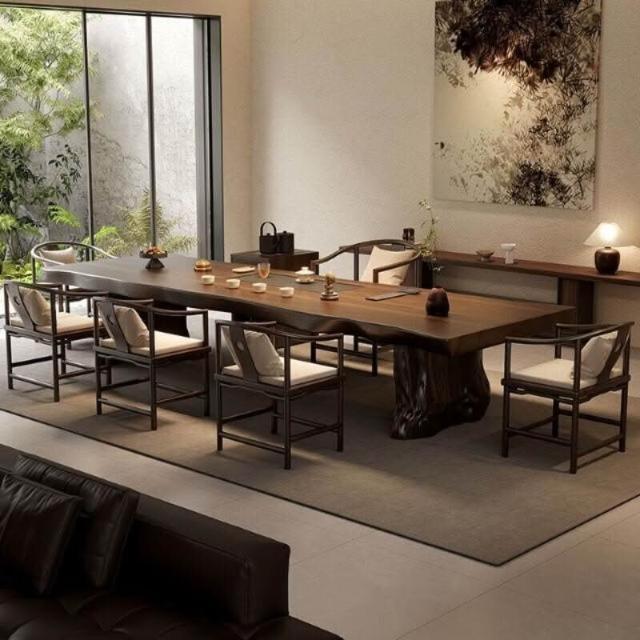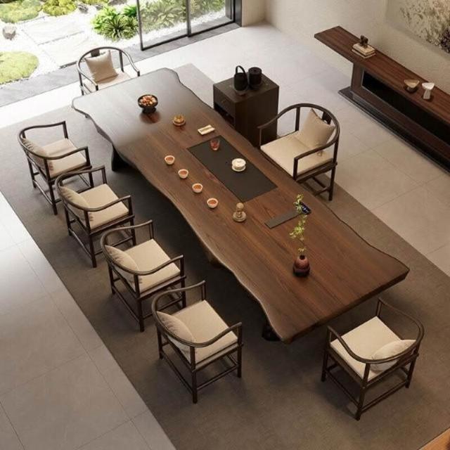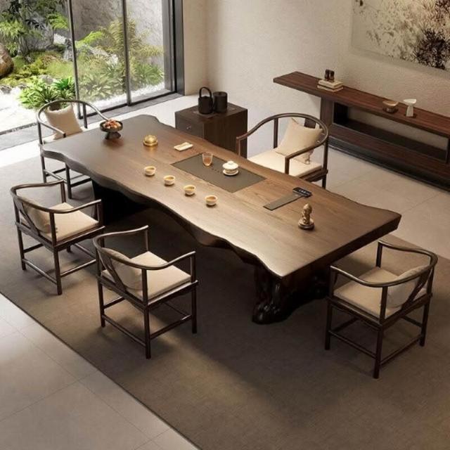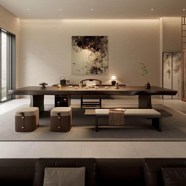 新中式實木大板辦公室家用茶桌椅組合高端茶臺茶盤一體簡約泡茶桌