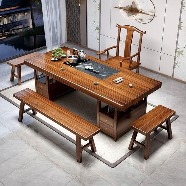 茶桌原木實木大板中式桌椅組合家用茶臺一體一整套辦公室茶幾泡茶