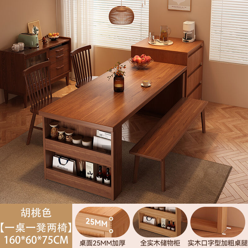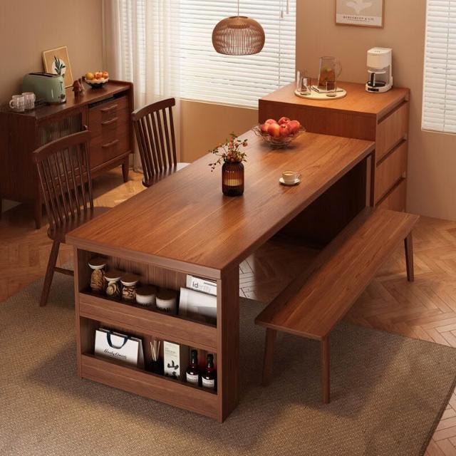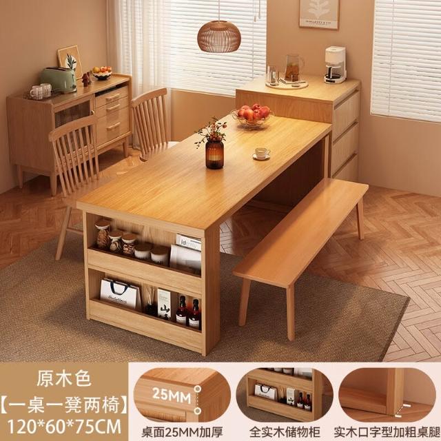 2025新款實木餐桌一體家用多功能日式島臺餐桌長方形吃飯桌椅組合