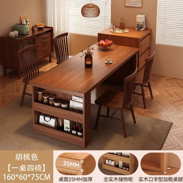 2025新款實木餐桌一體家用多功能日式島臺餐桌長方形吃飯桌椅組合