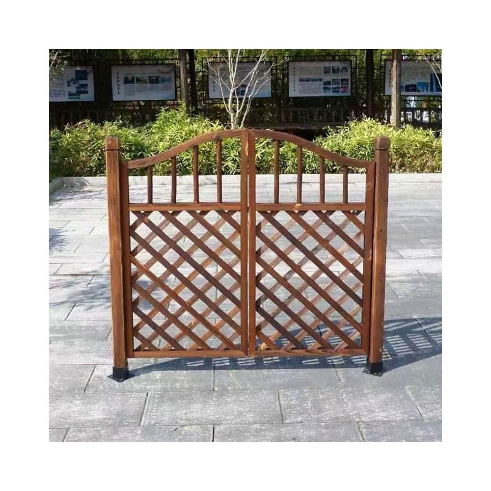 戶外碳化復古防腐木門木柵欄門園藝柵欄門籬笆花園木門護欄雙開門