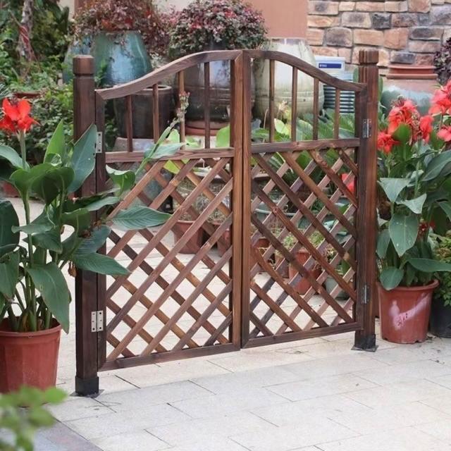戶外碳化復古防腐木門木柵欄門園藝柵欄門籬笆花園木門護欄雙開門