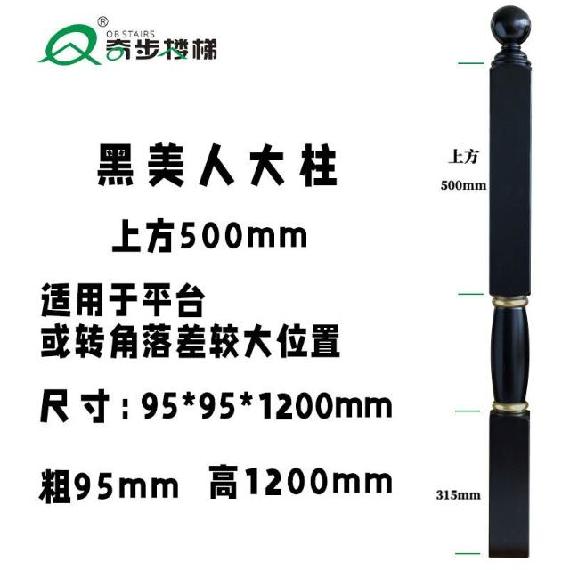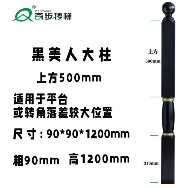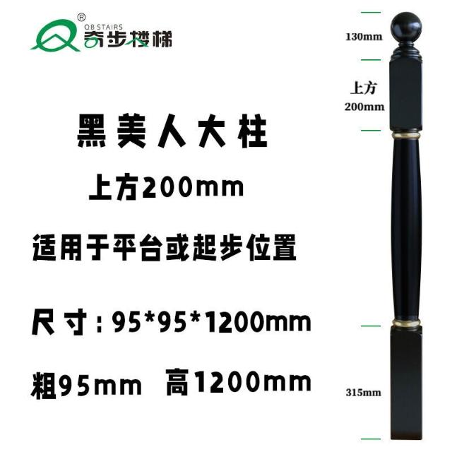 奇步新款黑美人實木樓梯立柱扶手環保油漆進口橡膠木欄桿飄窗護欄