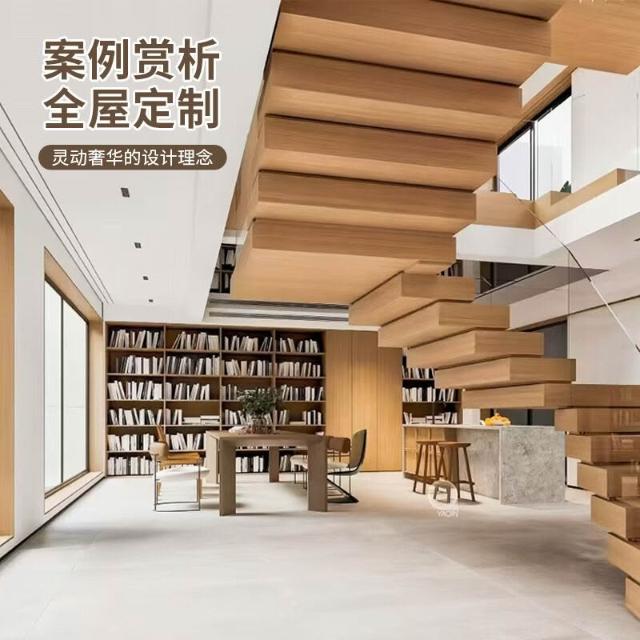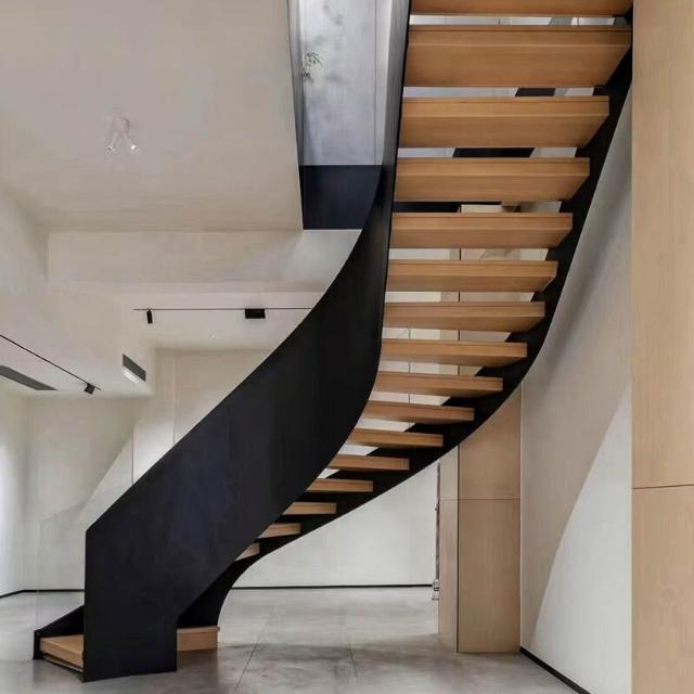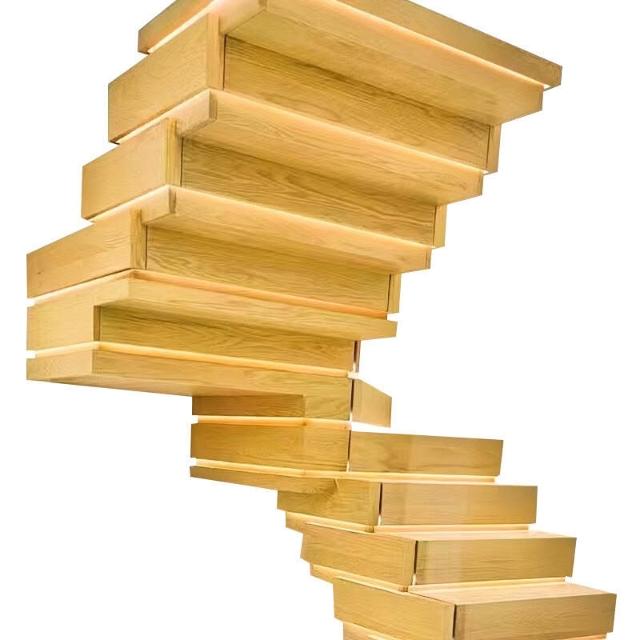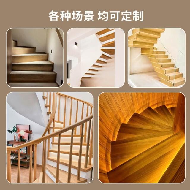 全屋裝修室內別墅家用輕奢旋轉樓梯欄桿扶手木地板 懸浮樓梯實木