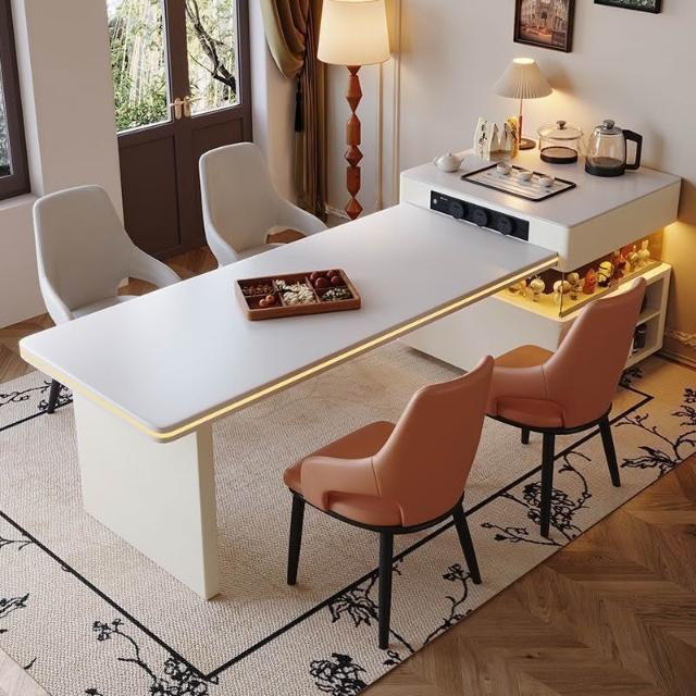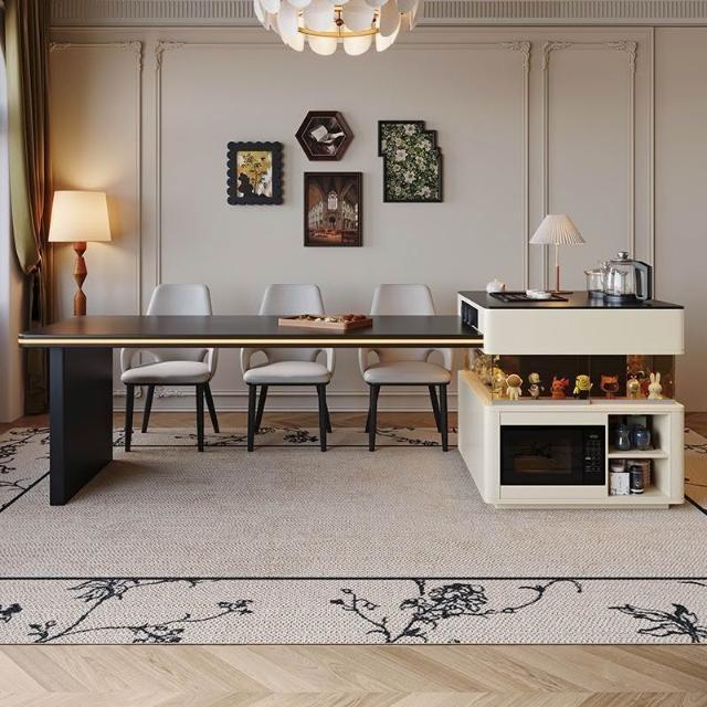 2025島臺餐桌一體現代簡約多功能家用輕奢中古風可伸縮餐桌椅組合