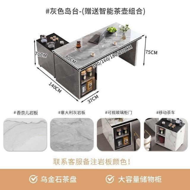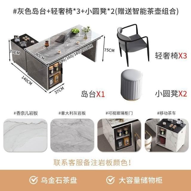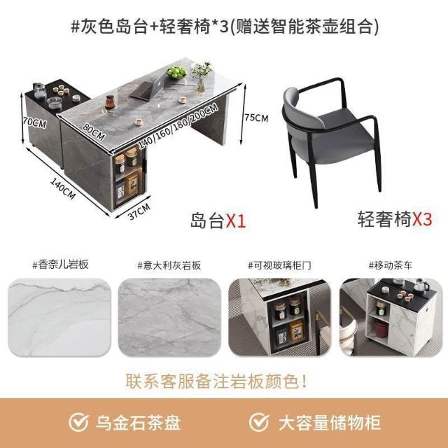 巖板茶桌椅組合辦公室陽臺現代簡約輕奢島臺茶臺燒水壺一體移動