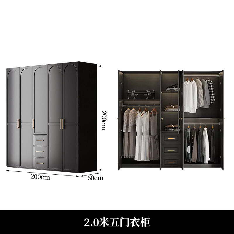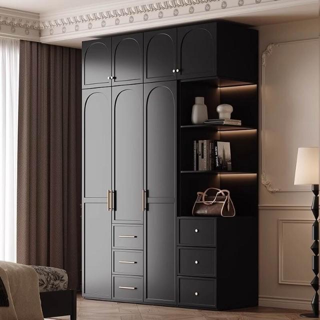 法式復古風黑色衣櫃現代簡約小戶型輕奢網紅衣櫥儲物櫃臥室經濟型