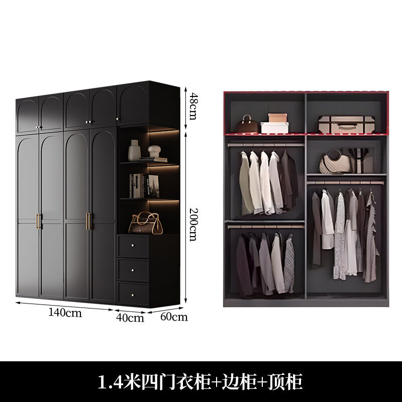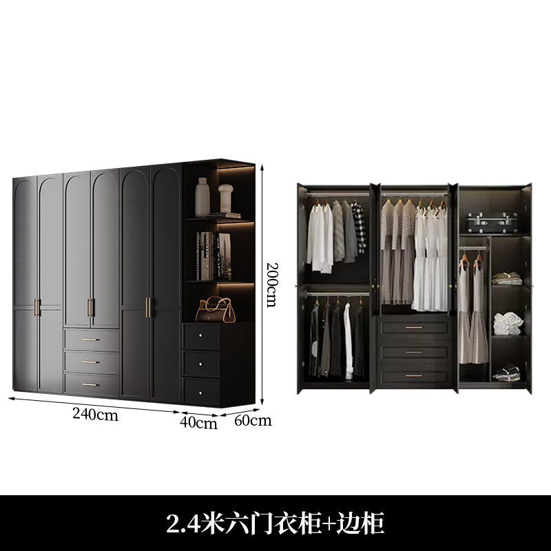 法式復古風黑色衣櫃現代簡約小戶型輕奢網紅衣櫥儲物櫃臥室經濟型