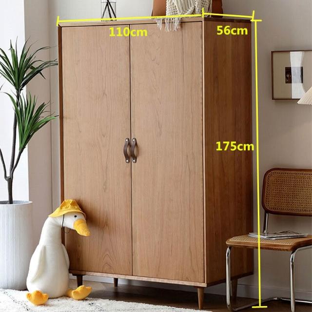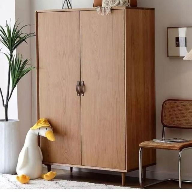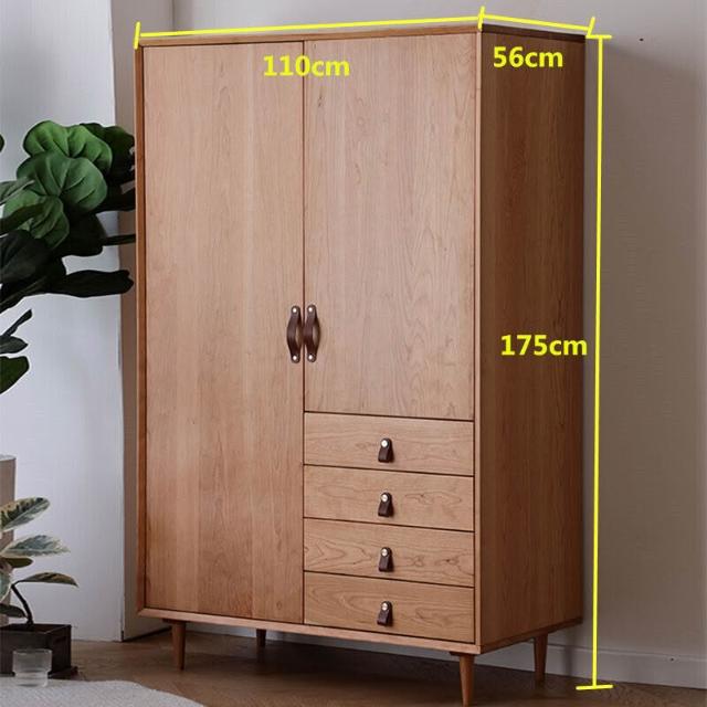 日式櫻桃木衣櫃實木原木簡約臥室家用衣櫥收納經濟性宿舍簡易掛衣