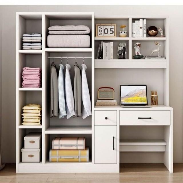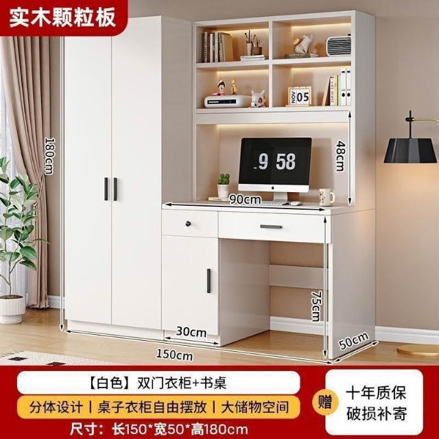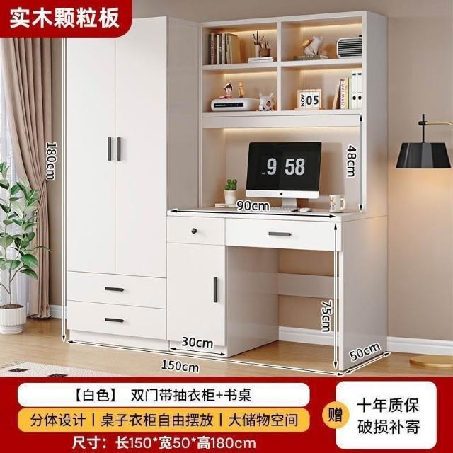 衣櫃實木家用臥室帶書桌一體組合小戶型學生學習電腦桌連體櫃衣櫥