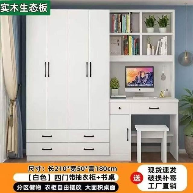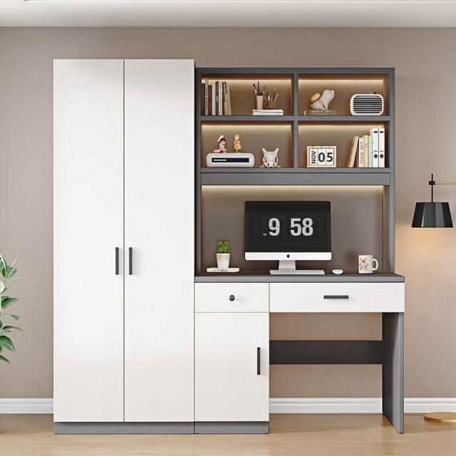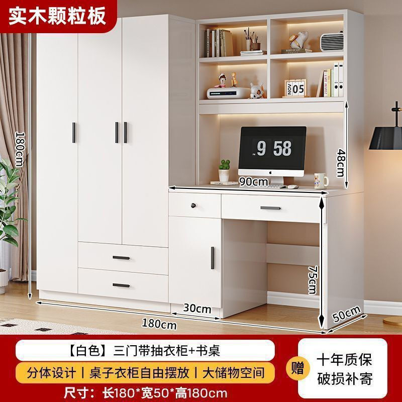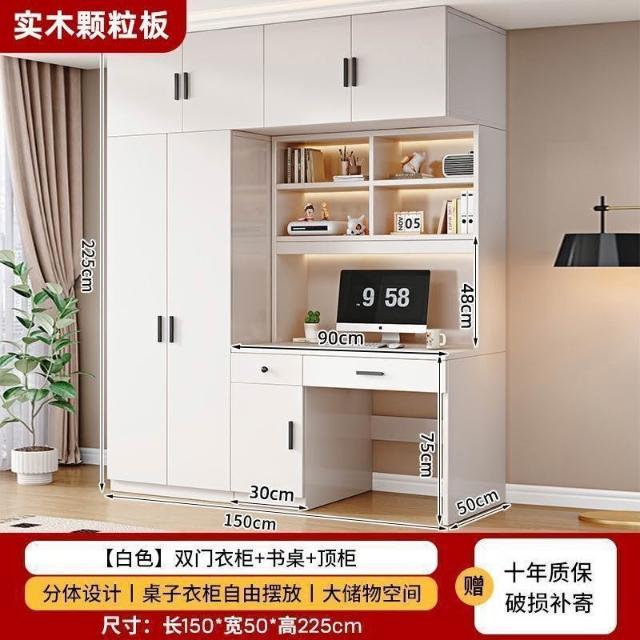衣櫃實木家用臥室帶書桌一體組合小戶型學生學習電腦桌連體櫃衣櫥