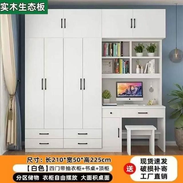 衣櫃實木家用臥室帶書桌一體組合小戶型學生學習電腦桌連體櫃衣櫥