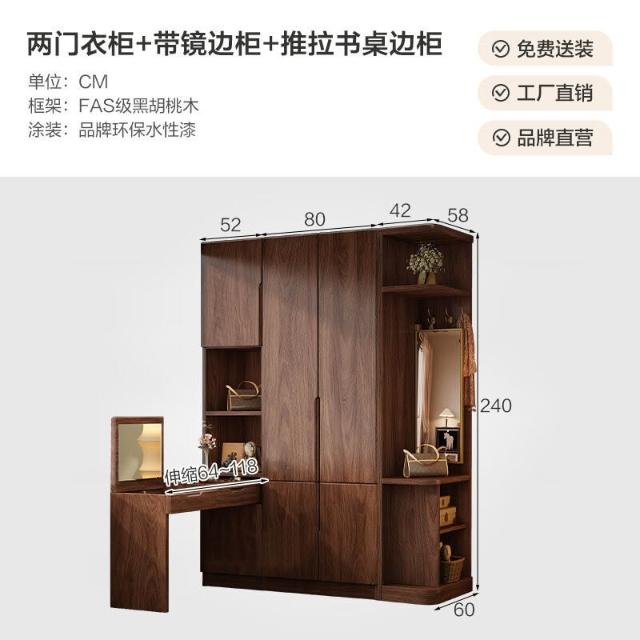 黑胡桃木實木衣櫃轉角化妝桌組合小戶型臥室家用書桌櫃一體學習桌
