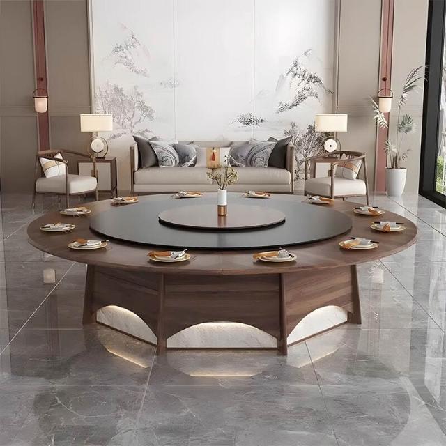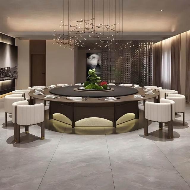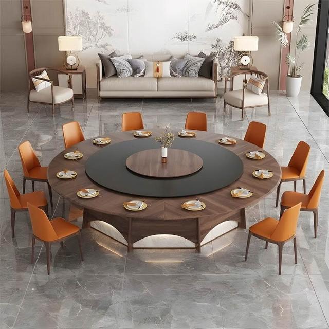 餐桌大圓桌燈帶款帶巖板轉盤酒店飯店會所餐廳包廂20人圓餐桌