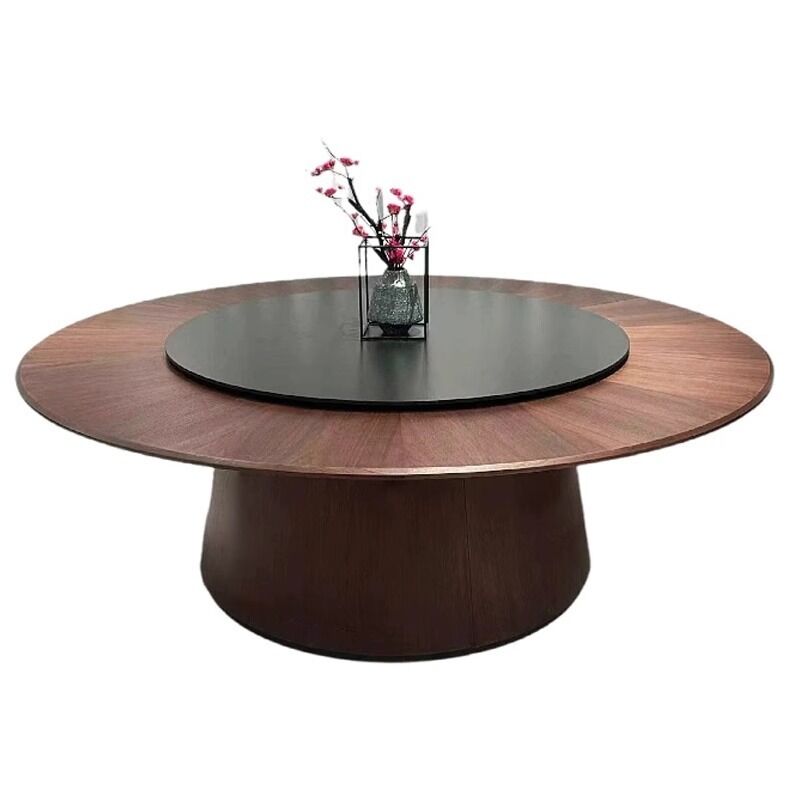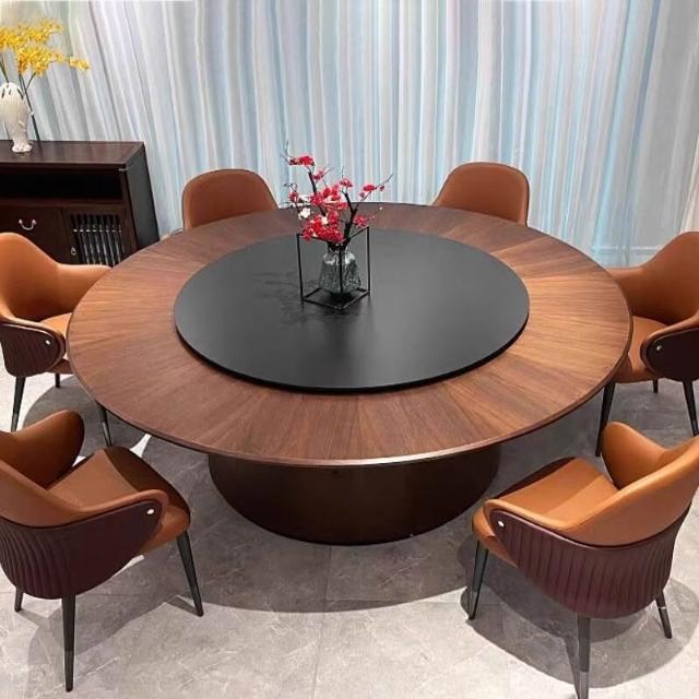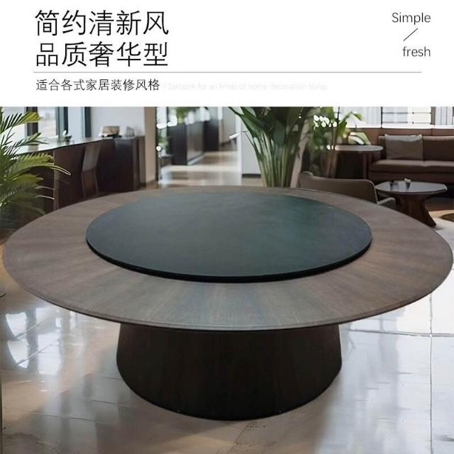 酒店餐桌大圓桌子巖板中間轉盤20人包廂飯店家用飯桌火鍋圓桌