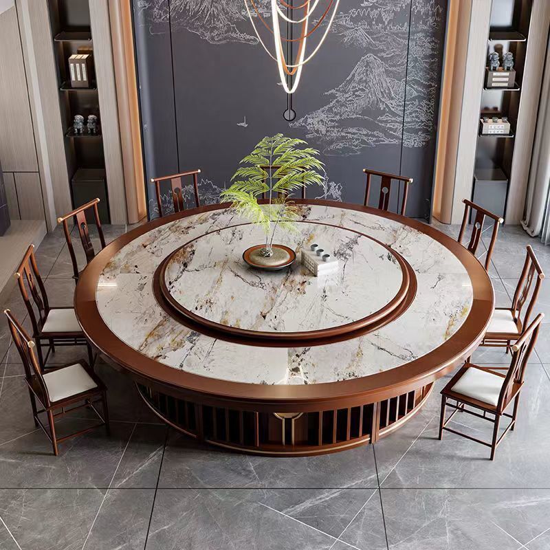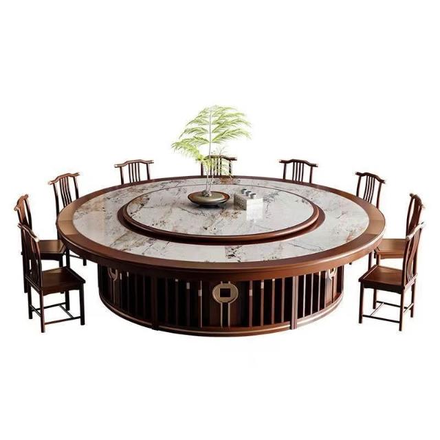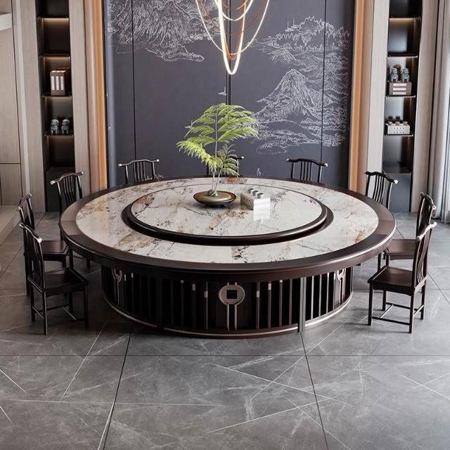 新中式巖板酒店餐桌餐桌實木圓桌18人20人飯店商用包廂火鍋桌