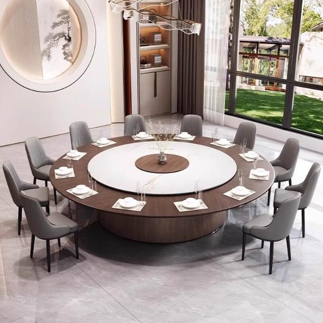 新中式酒店餐桌大圓桌轉盤20人包廂2米3米家用實木大椅子巖板