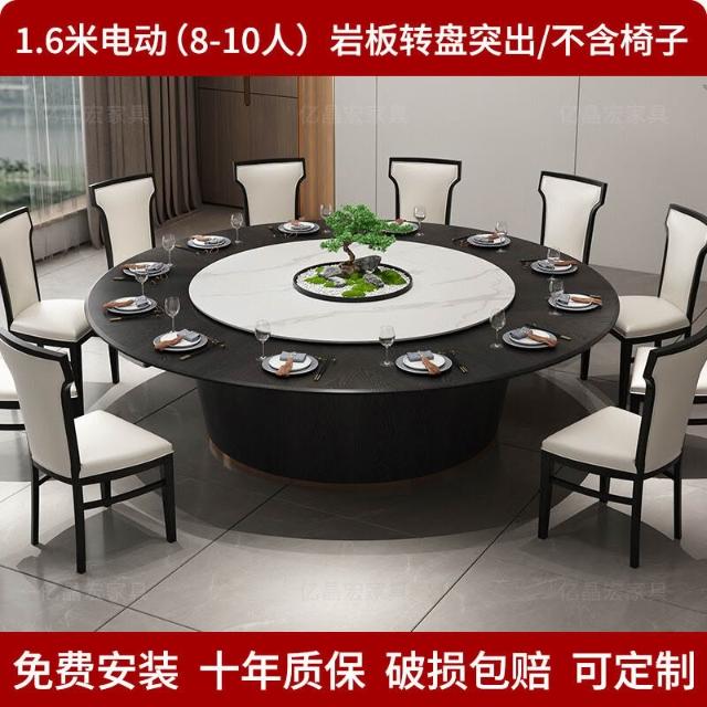 新中式酒店餐桌大圓桌轉盤20人包廂2米3米家用實木大椅子巖板
