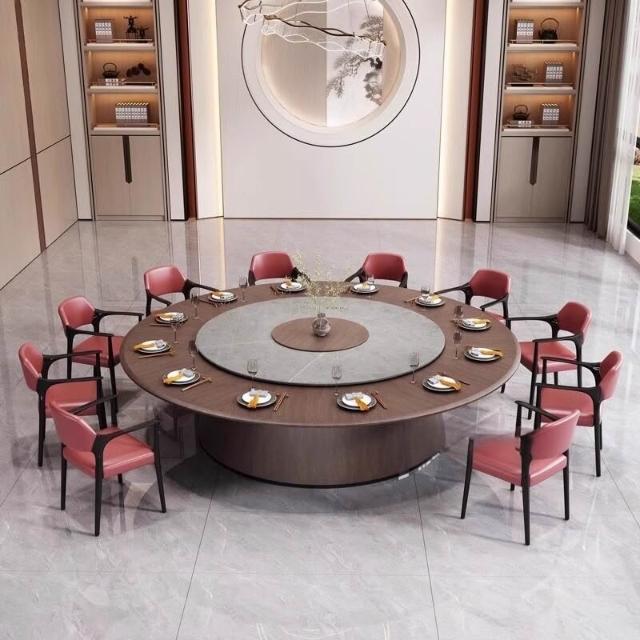 新中式酒店餐桌大圓桌轉盤20人包廂2米3米家用實木大椅子巖板