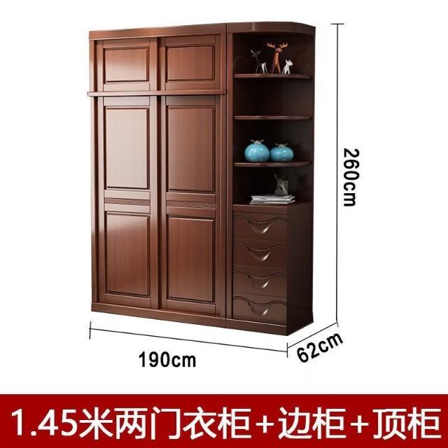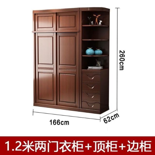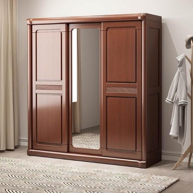 中式實木衣櫃兩門推拉衣櫃1.2米兩門三門臥室原木帶鏡子家用衣櫥