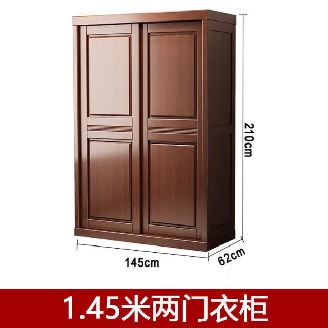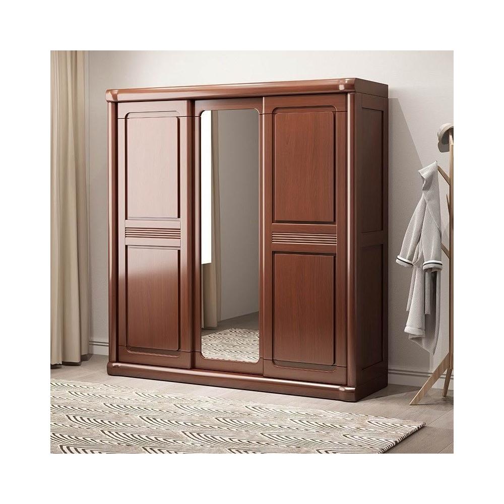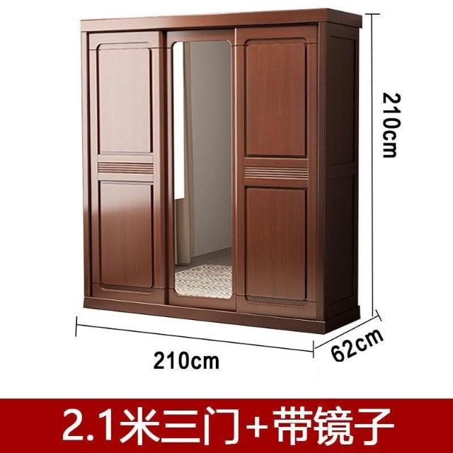 中式實木衣櫃兩門推拉衣櫃1.2米兩門三門臥室原木帶鏡子家用衣櫥