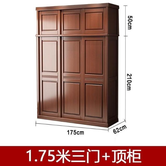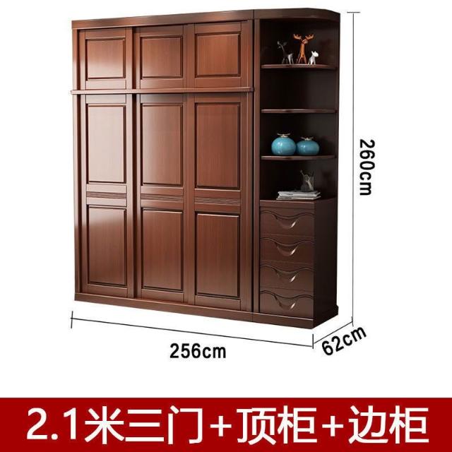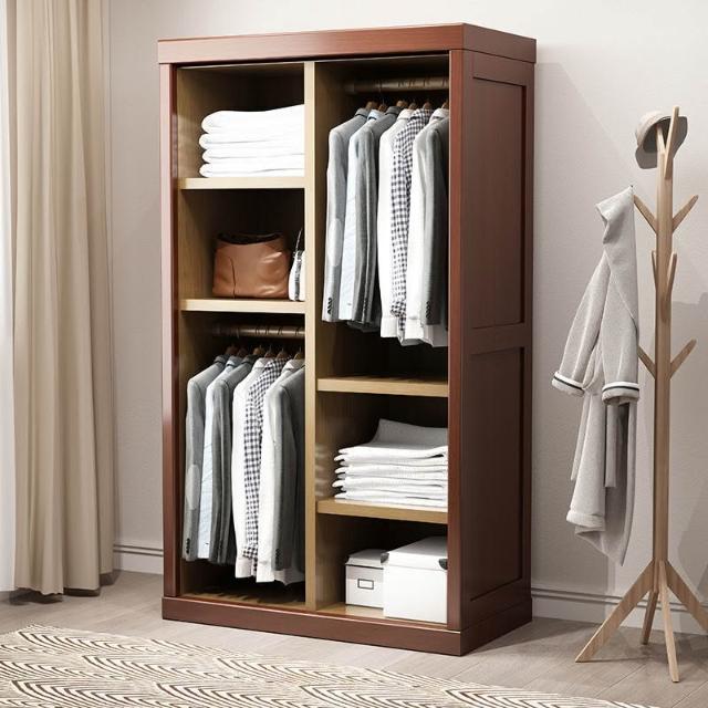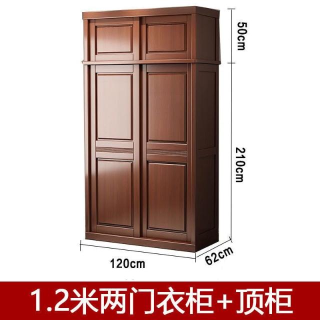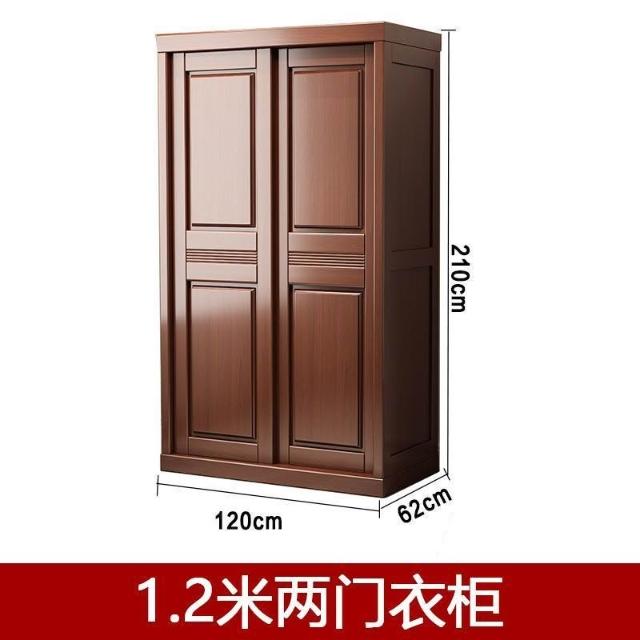中式實木衣櫃兩門推拉衣櫃1.2米兩門三門臥室原木帶鏡子家用衣櫥