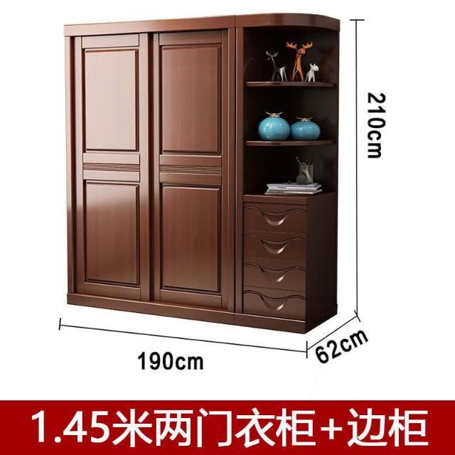 中式實木衣櫃兩門推拉衣櫃1.2米兩門三門臥室原木帶鏡子家用衣櫥