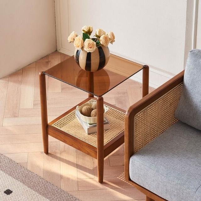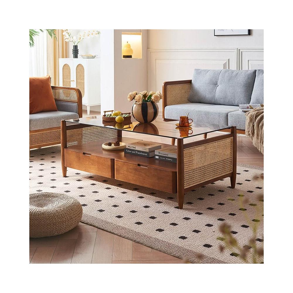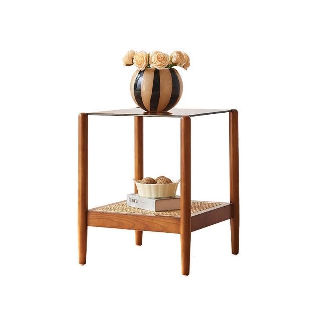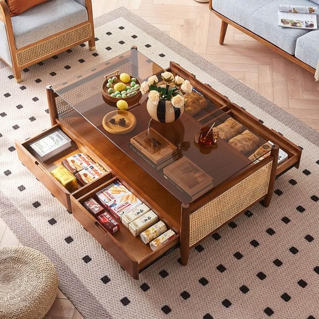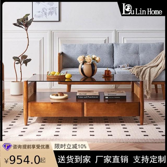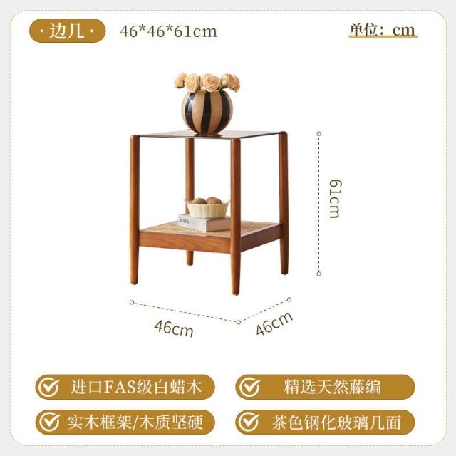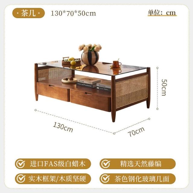 日式侘寂風茶幾客廳高級感家用實木藤編茶臺小戶型民宿長方形茶桌