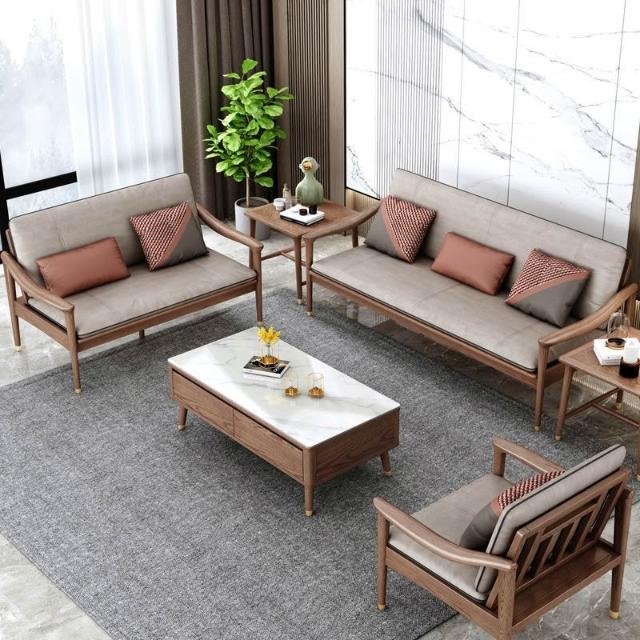 北歐新中式實木沙發現代簡約三人位客廳小戶型白蠟木沙發貴妃家具