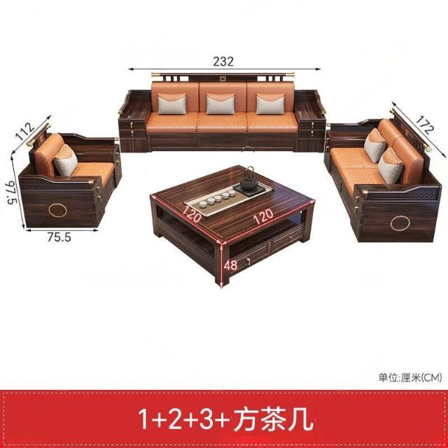 新中式烏金木實木沙發組合2025新款冬夏兩用別墅木質客廳儲物家具