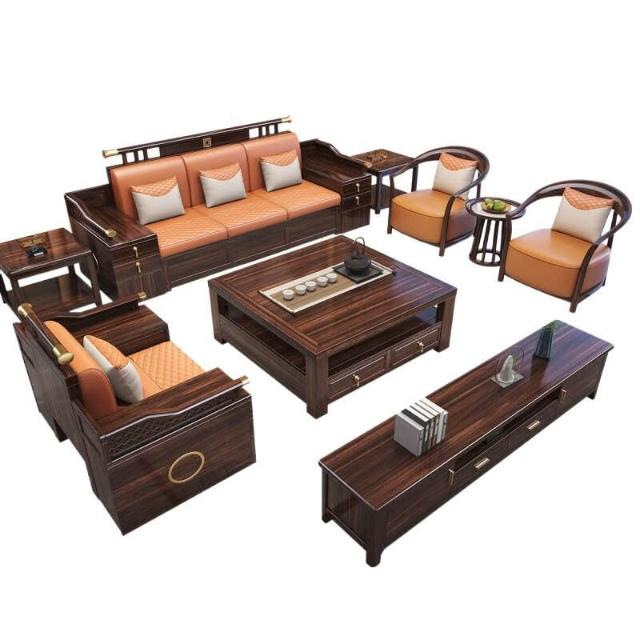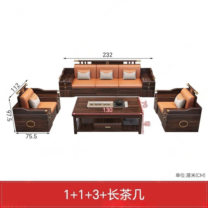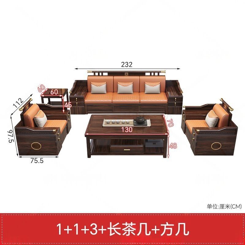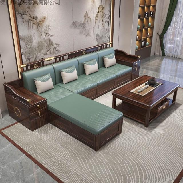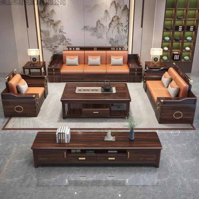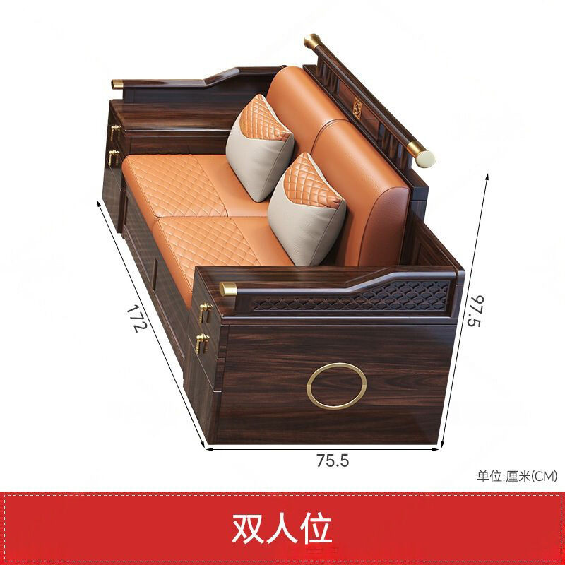 新中式烏金木實木沙發組合2025新款冬夏兩用別墅木質客廳儲物家具