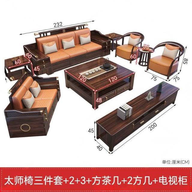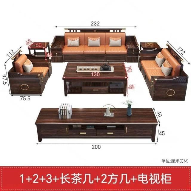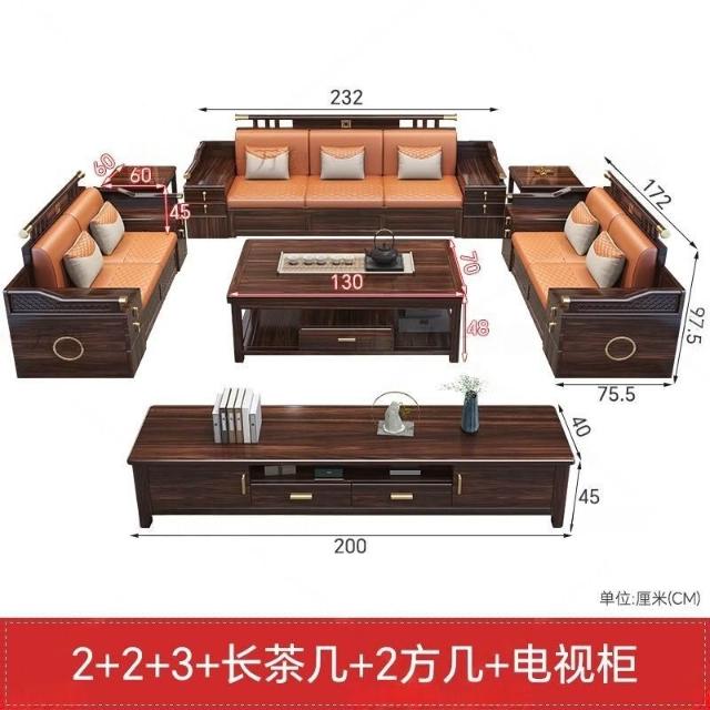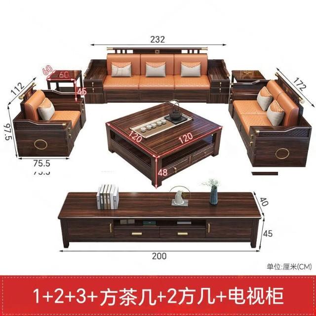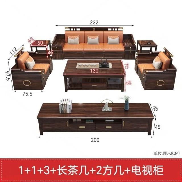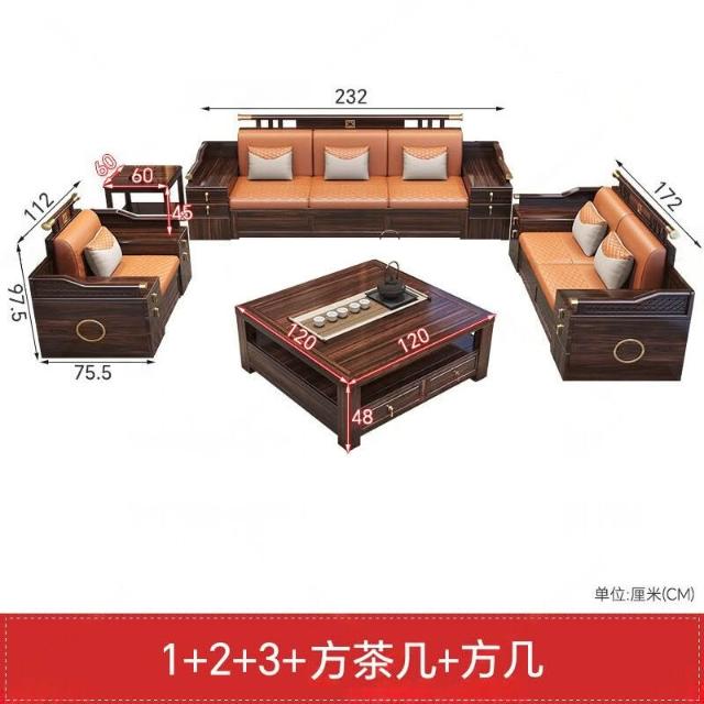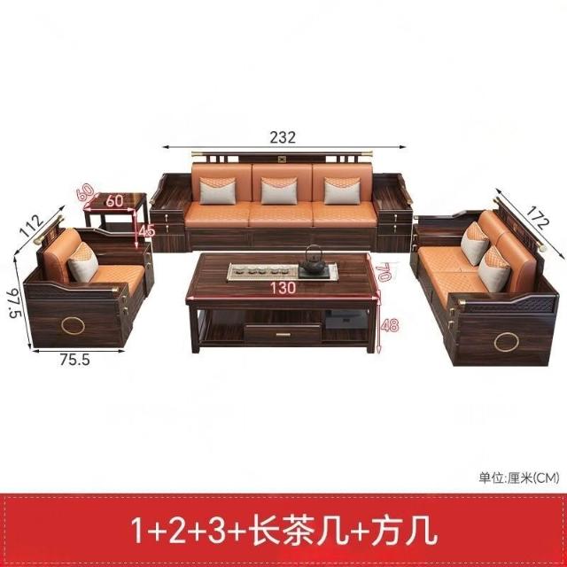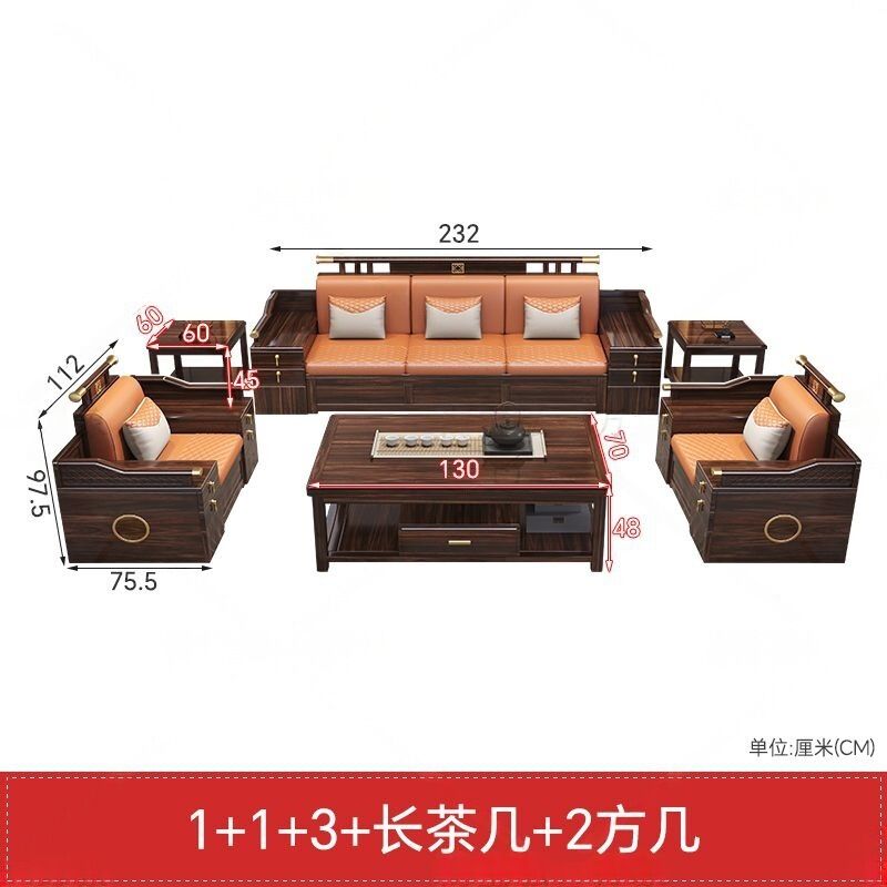 新中式烏金木實木沙發組合2025新款冬夏兩用別墅木質客廳儲物家具