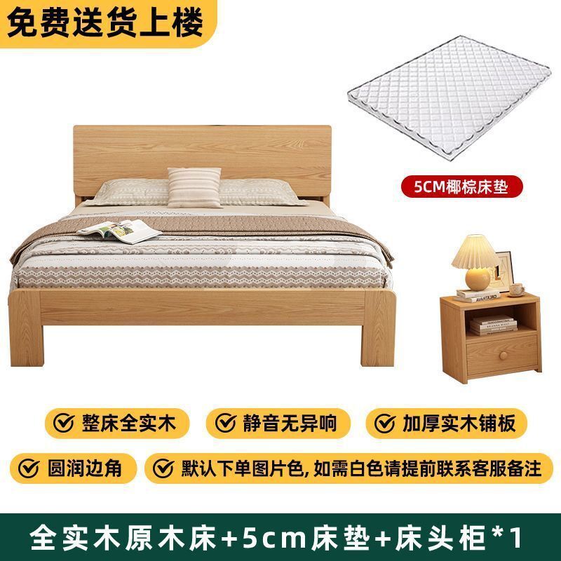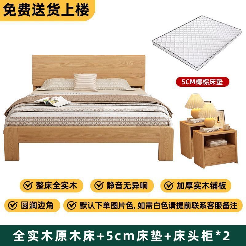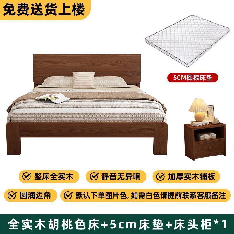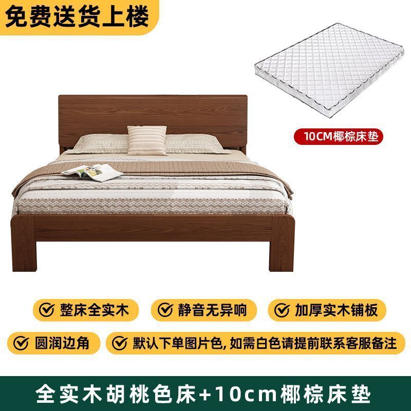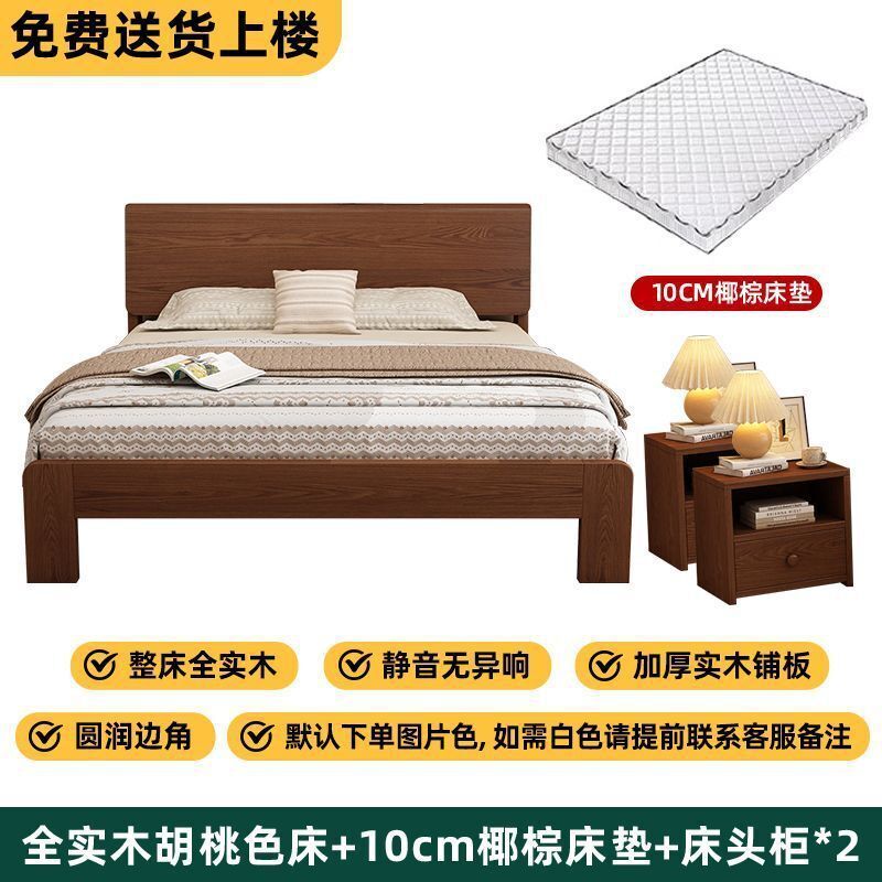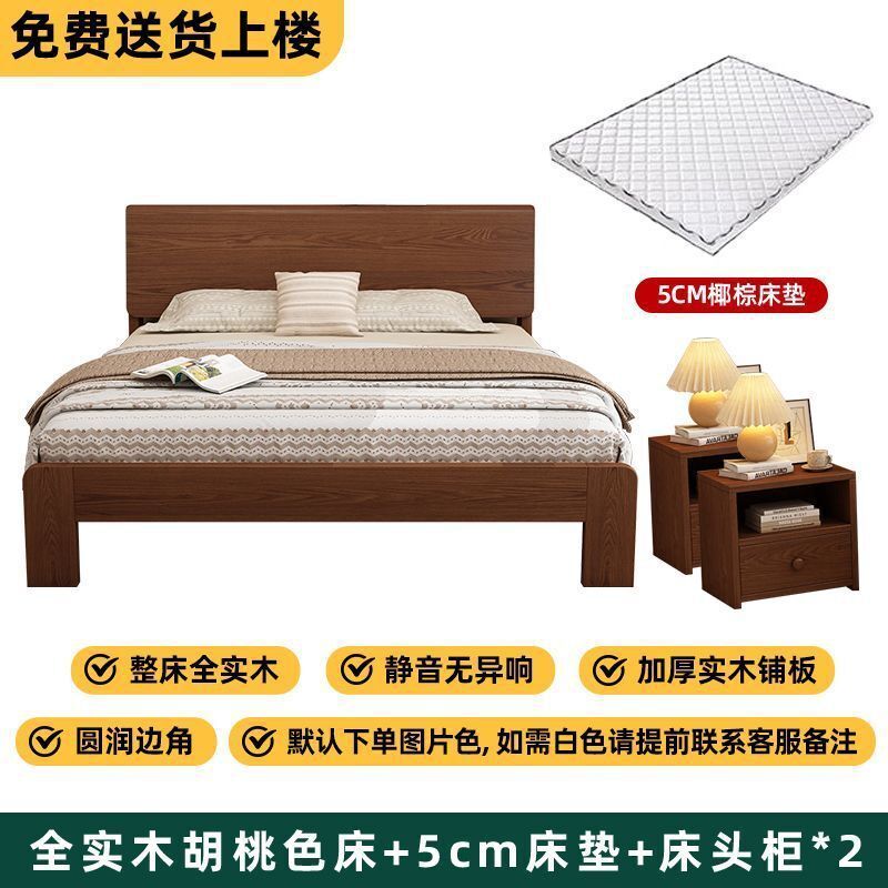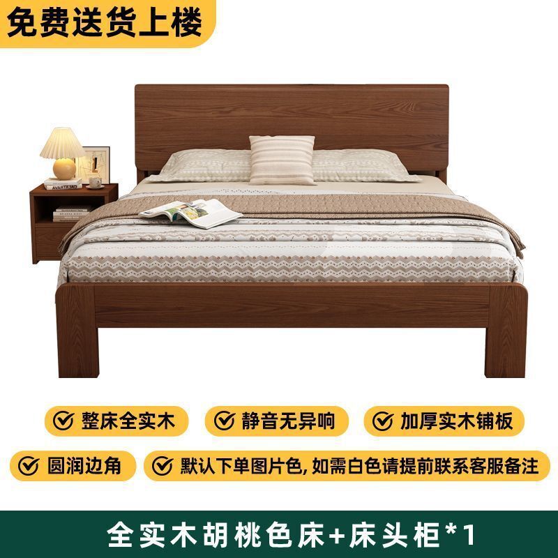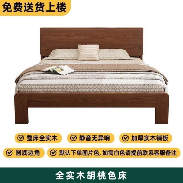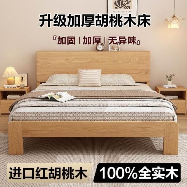 胡桃木實木床現代簡約單人床家用雙人床經濟型出租房床架主臥床架
