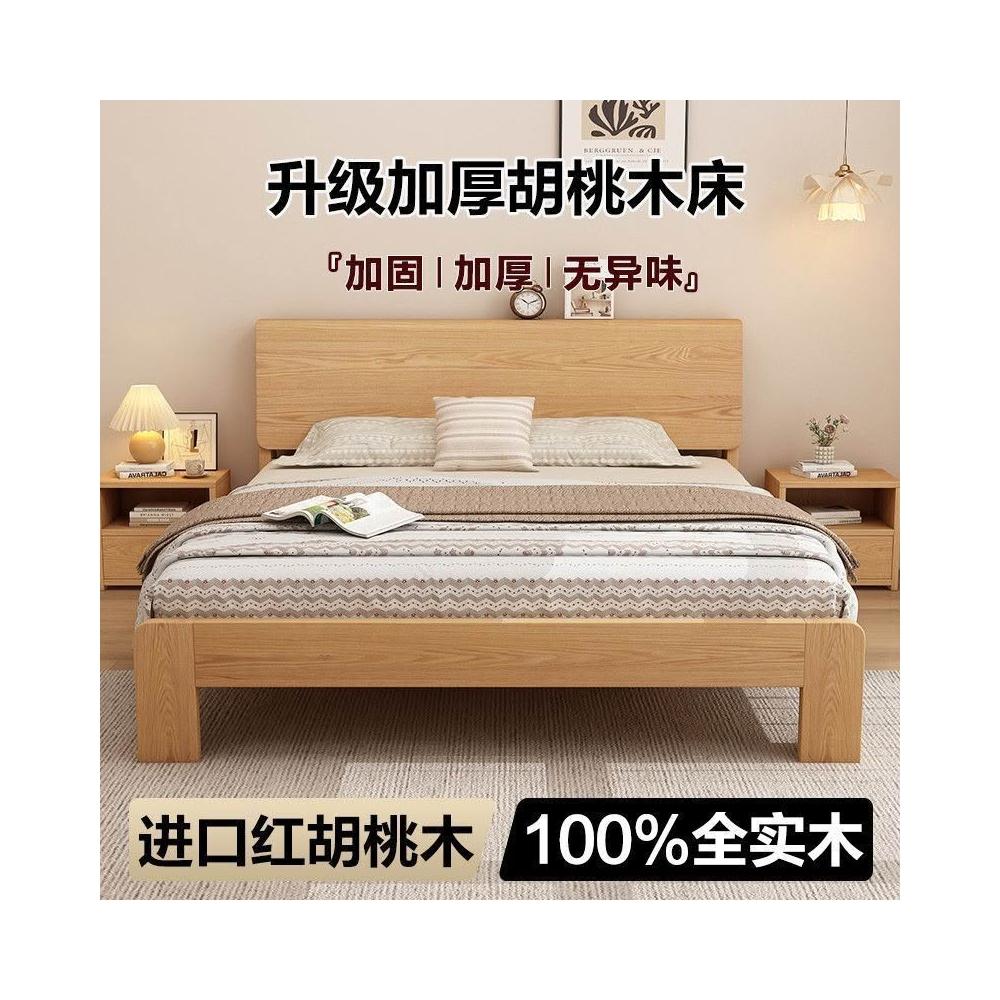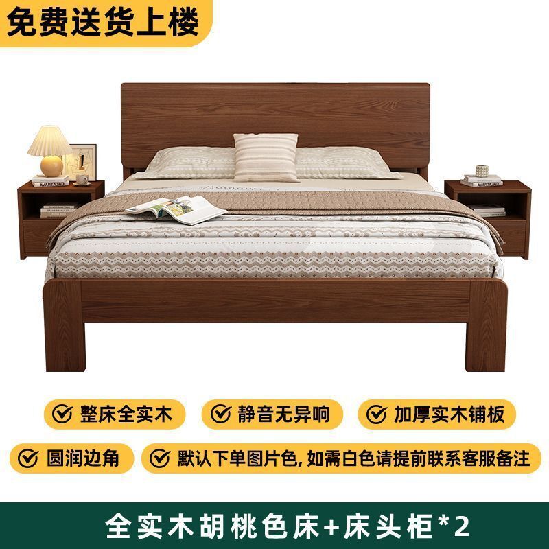胡桃木實木床現代簡約單人床家用雙人床經濟型出租房床架主臥床架