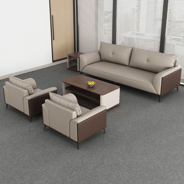 辦公室沙發真皮商務接待大廳會客區洽談簡約現代輕奢茶幾組合套裝