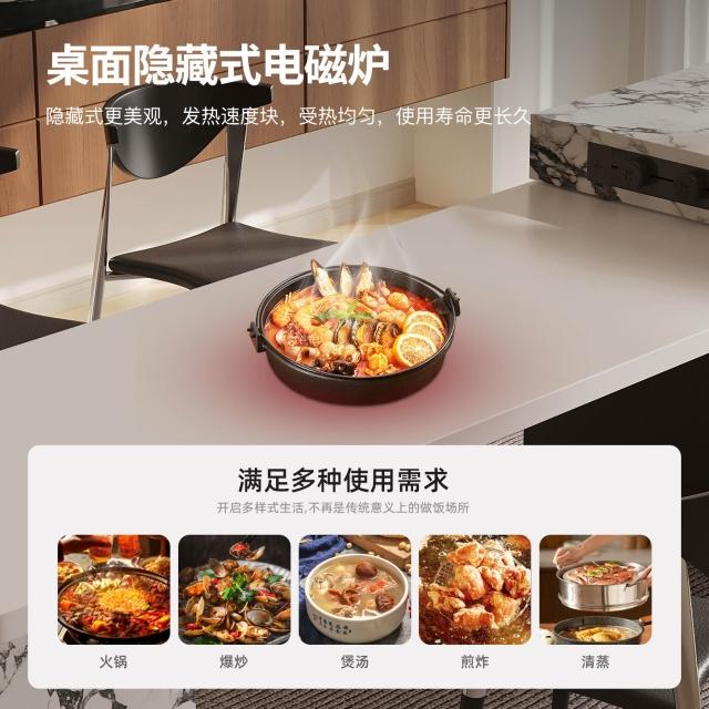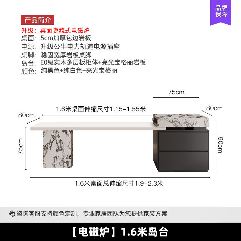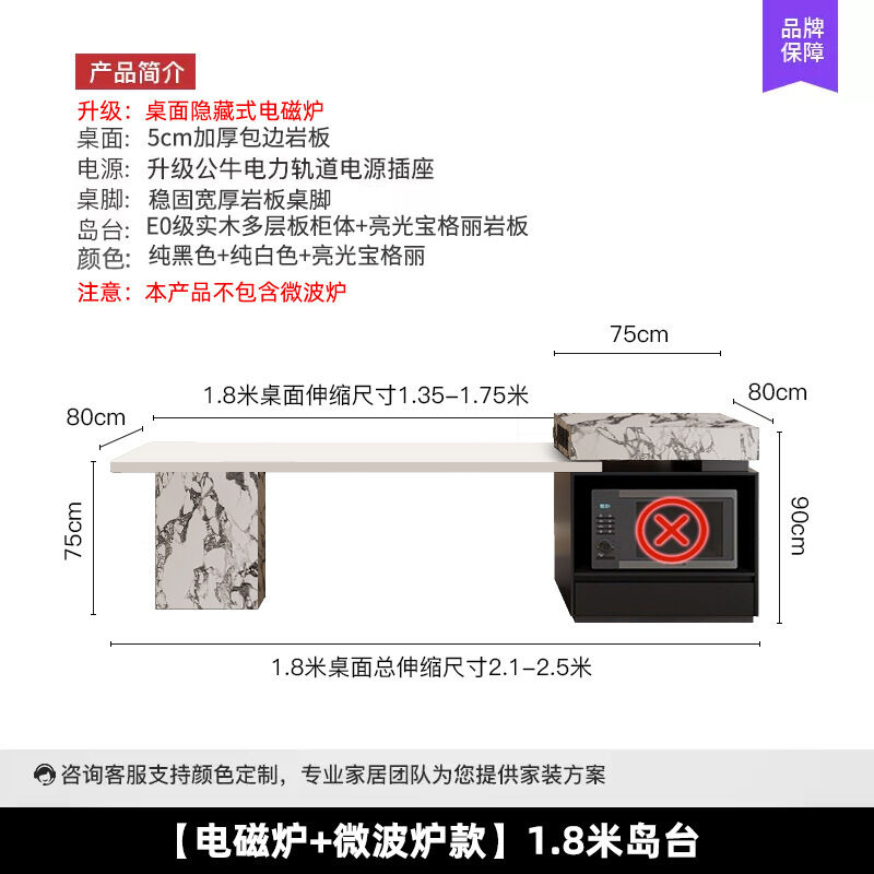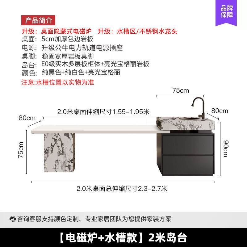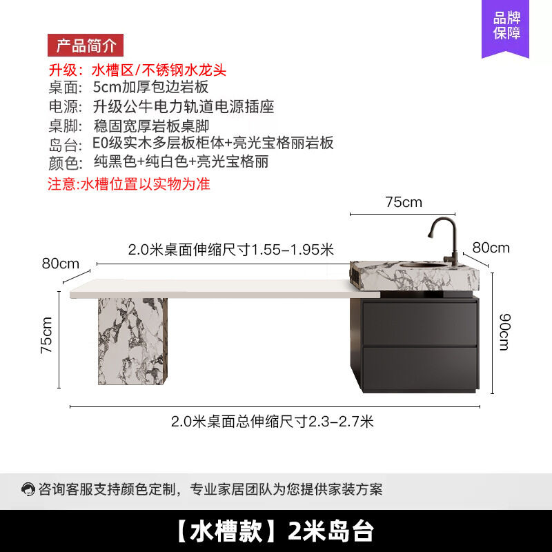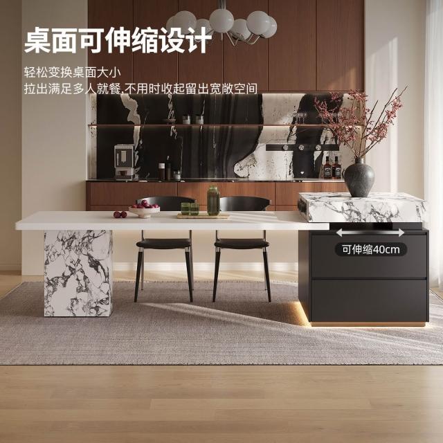 復古風寶格巖板島臺餐桌一體可伸縮大戶型開放式廚房餐廳中島臺