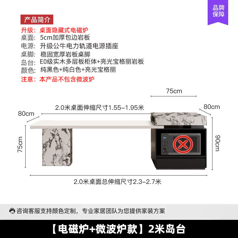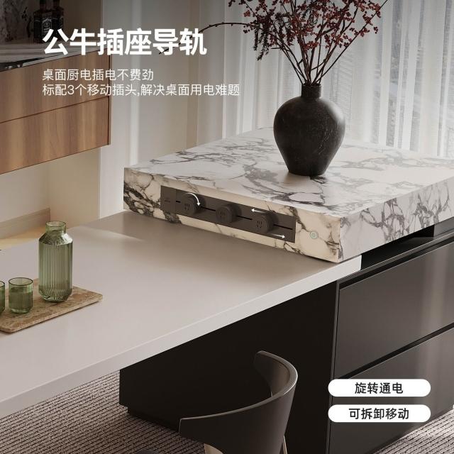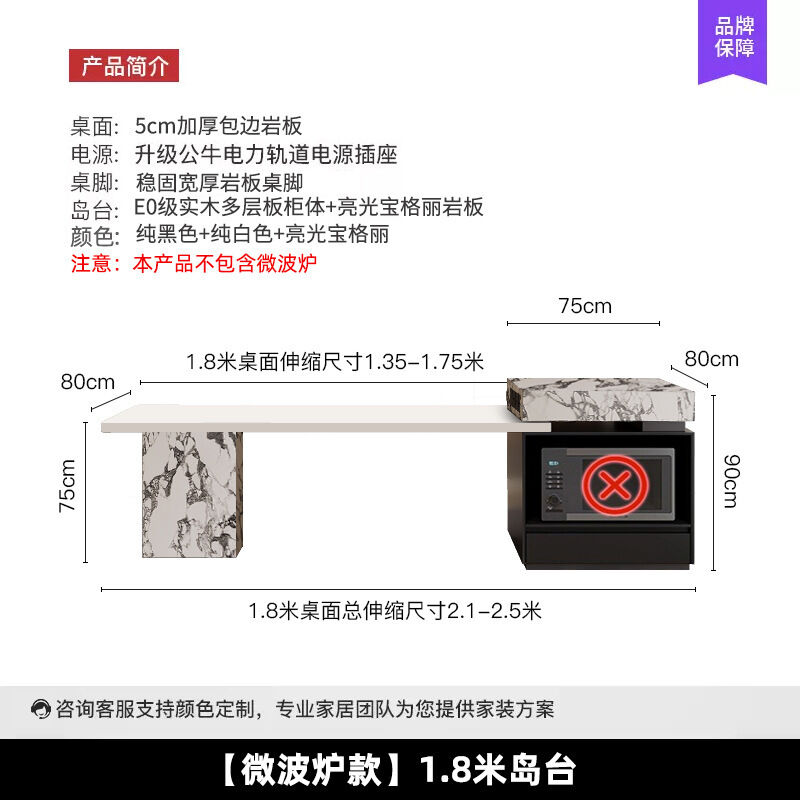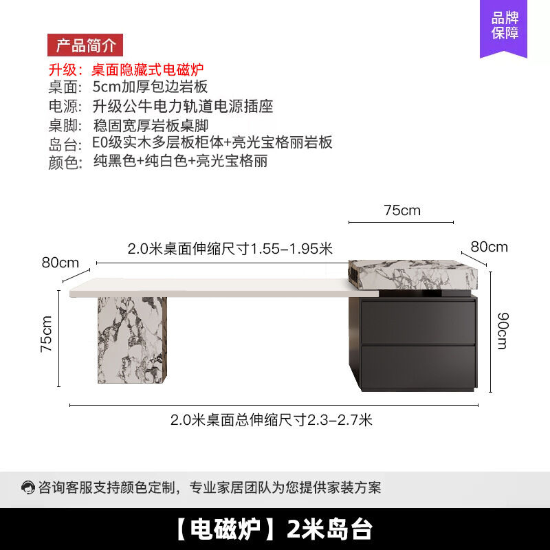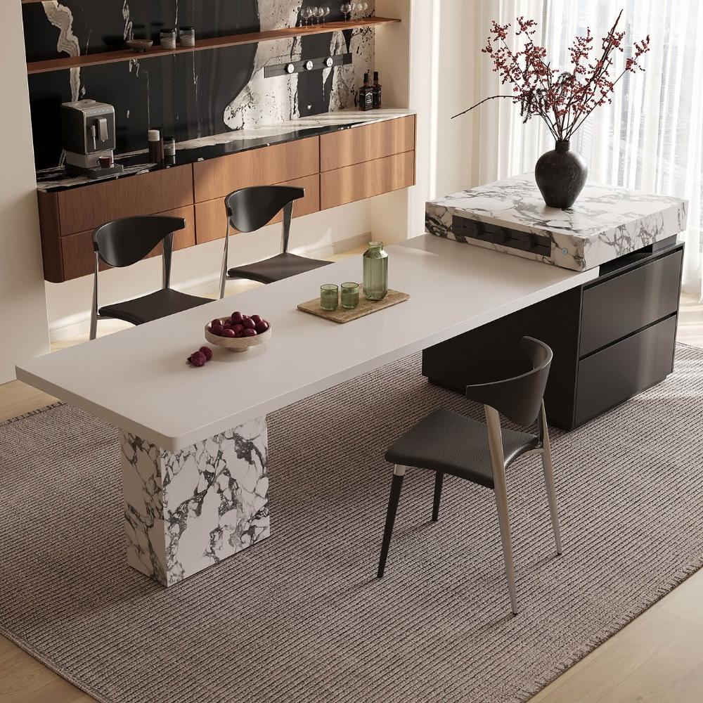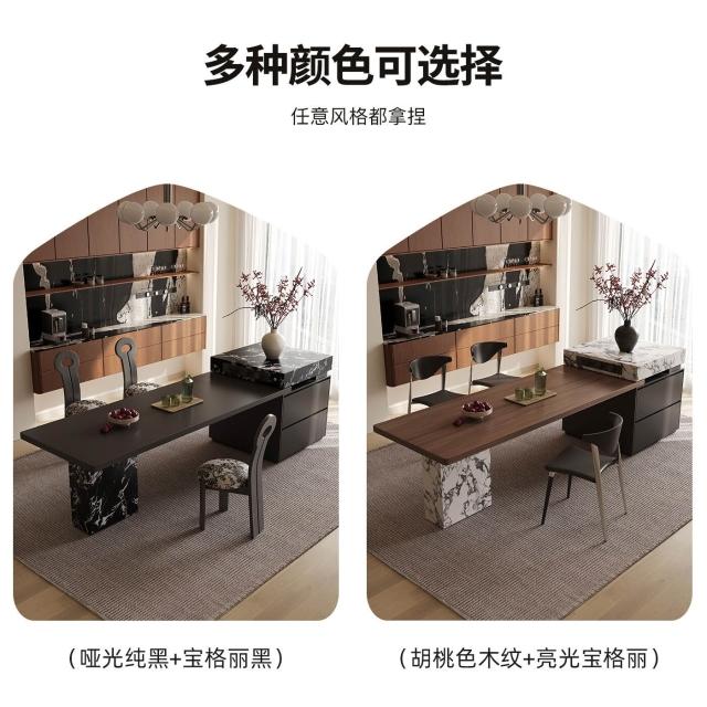 復古風寶格巖板島臺餐桌一體可伸縮大戶型開放式廚房餐廳中島臺