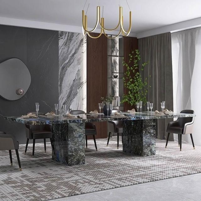 藍翡翠大理石餐桌長方形輕奢高檔餐桌椅組合別墅2025新款飯桌